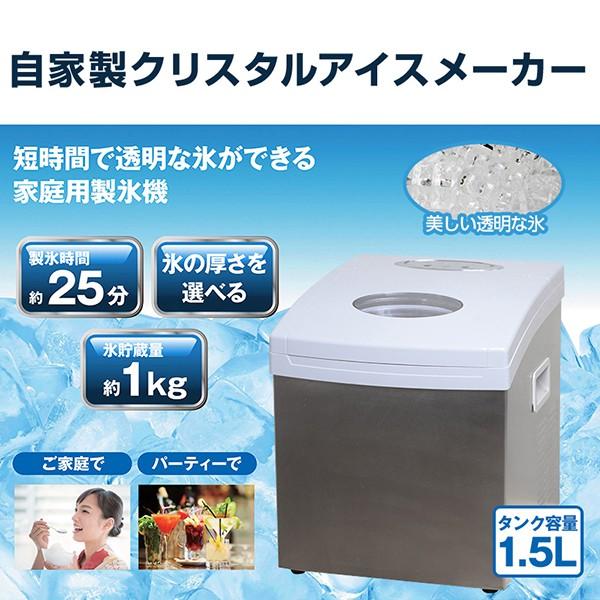 | 商品の特徴 | 製氷機 家庭用 クリスタル アイスメーカー 製氷器 氷作り 短時間で透明。製氷機 家庭用 小型 大容量 透明 氷 サイズ調整 洗浄モード付き 20kg。自家製クリスタルアイスメーカー 短時間で透明な氷が作れる 家庭用製氷。短時間で透明な氷が作れる 家庭用製氷機 です。 ●スピード製氷約25分(氷24個あたり/3回目以降)のスピード製氷で、 パーティーなど大人数で使う際に便利です。 ●音でお知らせ氷が満タン、 または水が不足するとブザー音でお知らせ。 ●置き場所を選ばないデザインステンレス素材を使用したシンプルなデザイン電源:AC100V 50/60Hz消費電力:195W本体サイズ:約幅30.5x奥行36x高さ36cm本体重量:約12.4kgコードの長さ:1.4m製氷時間:25分(3回目以降)氷の満氷量:1kg水タンク容量:1.5L連続使用時間:168時間(1週間)騒音:60dB冷媒名:R134a冷却温度:-25℃使用環境温度範囲:10℃〜35℃付属品:氷バスケット、 氷スコップ、 排水栓、 容器、 取扱説明書(保証書)生産国:中国。z7-4589668464325.jpg。 ●透明で硬い氷が作れる水道水で透き通る透明で硬い氷が作れます。。家庭用 冷凍庫 スリム 業務用 75L 冷蔵室 42L 冷凍室 32L 霜取り。 ●氷の厚さを選べます氷の「薄/厚」を選択できるので、 用途に合わせた氷を作ることが可能。【キムドヨン】Hisense 3ドア冷凍冷蔵庫 ダークブラウン2019年製。【blueeee様】 新生活応援 冷蔵庫 洗濯機 レンジ セット。 ●氷貯蔵量約1kg約1kgまでの氷を作ることができます。宅内搬入込み★Haier 148L 冷蔵庫【JR-NF148B-W】ECU5 | ||
