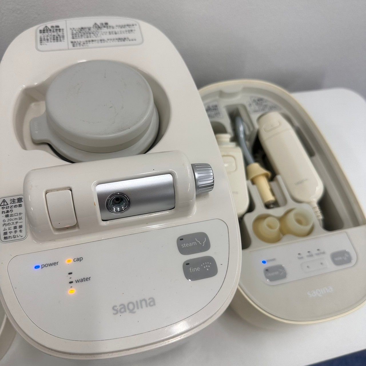 | 商品の特徴 | サキナ 美顔器 ホームエステ 送料込み saqina サキナ ホームエステ。ホームエステのフヨウサキナ。サキナ美顔器。。ホームエステのフヨウサキナ。SAQINA サキナ ビジュー 美顔器購入価格:35万6,000円この度新しい美顔器を購入しましたので、使っていただける方にお譲りします︎︎︎︎︎︎☺︎少しの黄変はありますが、動作に問題ありません。メンテナンスも定期的に行っておりましたので、まだまだご活用いただけると思います!【付属品】・テスラースプーン型ガラス管・テスラークシ型ガラス管・アイガード・クリーナー本体、クリーナーゴム※中古であることをご理解の上ご購入ください※段ボールにて発送致します※全てアルコール消毒をしてお送りします※輸送中の故障等に関しましては保証致しかねます | ||