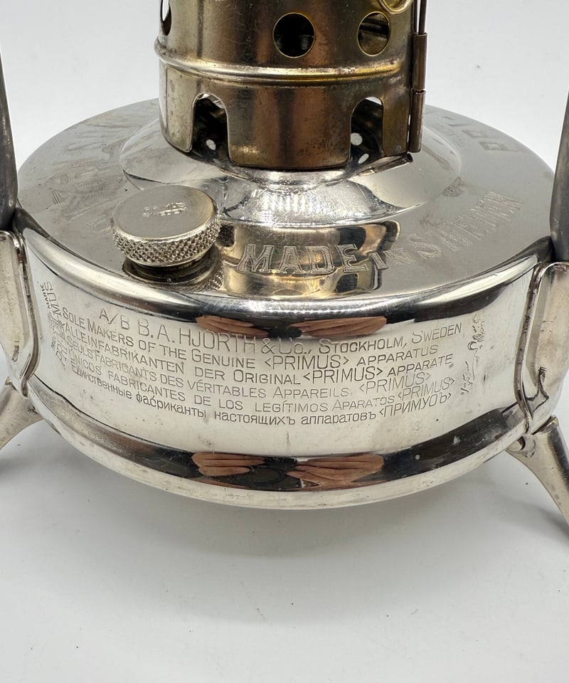 | 商品の特徴 | プリムス #210 シングルバーナーコンロ スウェーデン製 プリムス #210。Primus No210 1960 Burner/kerosene Sweden - 北欧キャンプストーブと。Primus No210 1960 Burner/kerosene Sweden - 北欧キャンプストーブと。スウェーデン製のケロシン(灯油)シングルバーナーコンロ、工具と説明書付き。。PRIMUS No.210 シングルバーナーストーブ ブラス | ヴィンテージ。- モデル名: primusプリムス No. 210- 付属品: 工具セット、説明書- 製造国: スウェーデン- 状態: 使用感あり、経年劣化あり、試運転済みご覧いただきありがとうございます。 | ||